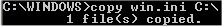 "COPY WIN.INI C:\" will copy the win.ini file when you are in the correct directory to the C: drive