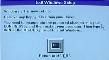 And that is it all finished. Return to dos and reboot the computer to access windows 3.1
