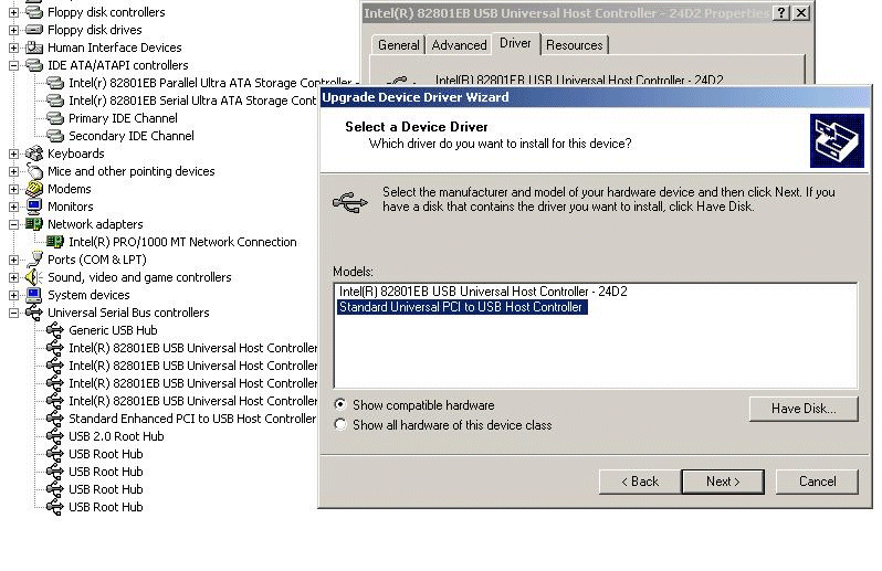 So, in short, you would have to change all the drivers below to it's standard driver.. The standard drivers have allot more compatibility with allot of different hardware.