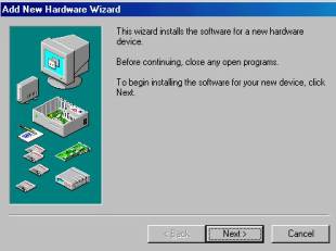 Otherwise you will end up with the Hardware Wizard. Double click on Icon for following menu, then click on next.