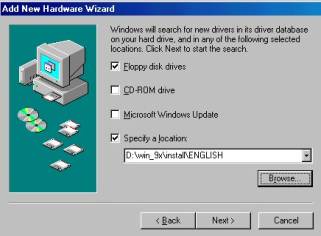 D:\win_9x\install\ENGLISH, (where D is the CD-Rom).
