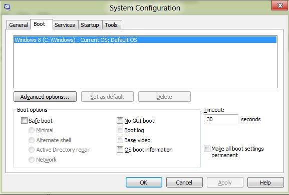 Now click on boot and adjust the "Timeout" value to a lower figure, 0 means computer will not pause at all on the menu. I recommend 5 seconds just incase you need to make adjustments or prevent a startup repair.