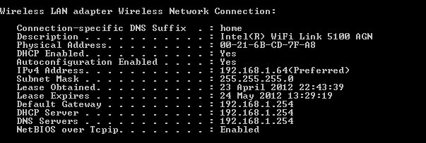 Click start/all programs accessories then run and type: CMD When the command windows opens type: ipconfig /all The following settings will appear (these settings you will require later):
