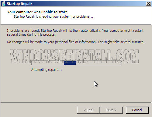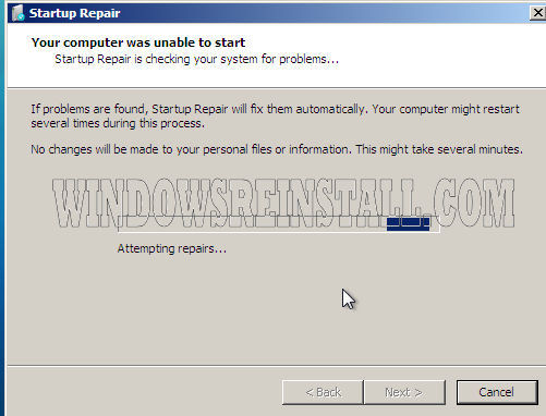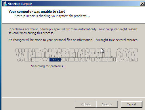 Startup repair will now search for problems that are preventing boot.