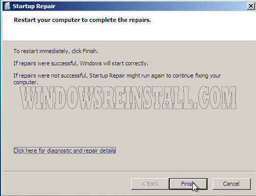 ....now click finish, for your PC to reboot and complete repairs.