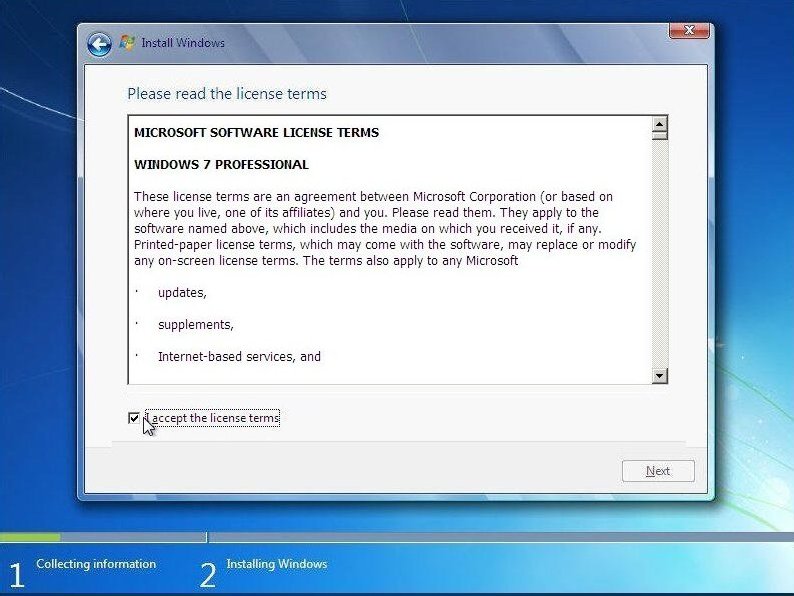 Windows 7 will now start the install procedure.