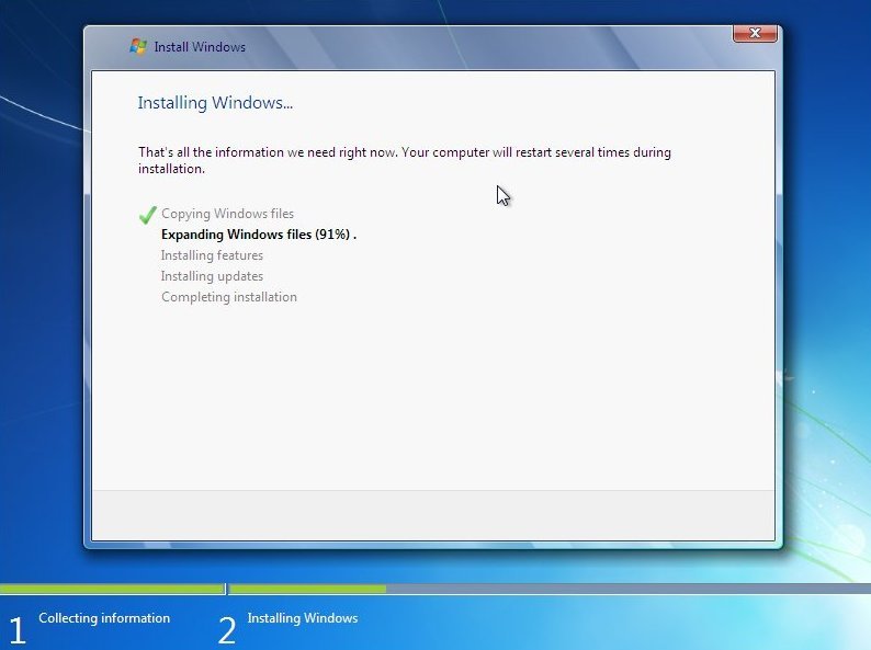 Now another screen appears, setup is "Starting Windows 7's" services....