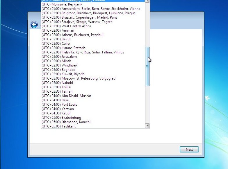 Change your time zone to your present location. If all is OK or once done then click on "Next" to continue...