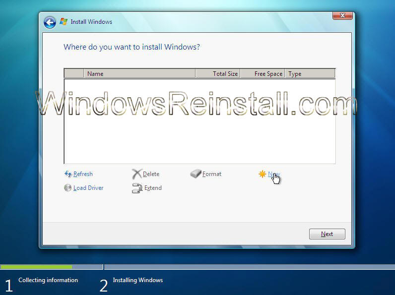 Drive Options Menu: Now click on "New"