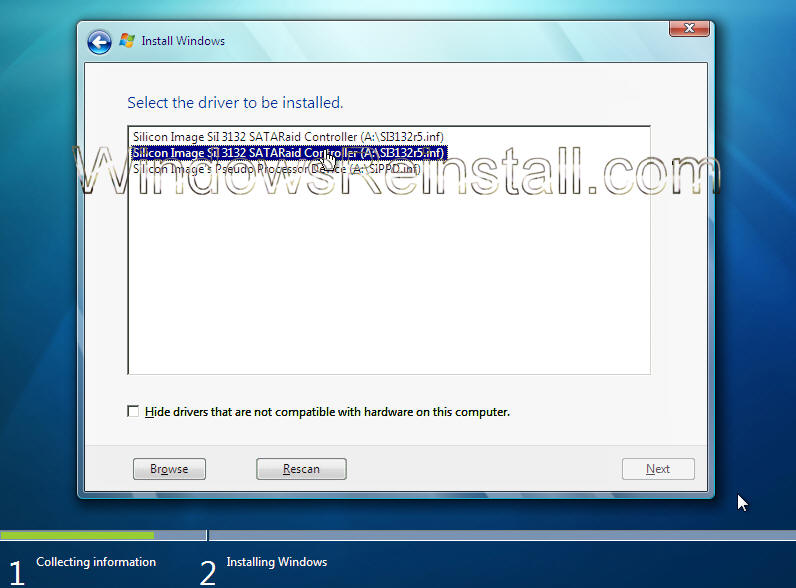 Load Driver Options Menu: Next you will select the location of the install.  The hard drive is not seen due to Windows 7 not having the driver. This driver should be supplied with your motherboard, if not it will be available for download from the motherboards manufacturer. This file will then needed extracted and copied a Floppy, CD or USB storage device.