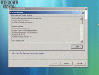 Once done the following screen will appear. If you want information on the repair then click on "Click here for diagnostic and repair details"...... | |