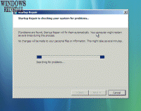 Startup repair will now search for problems that are preventing boot and make changes to fix the problem, this may cause your computer to reboot several times. This process may take some time to complete. | |