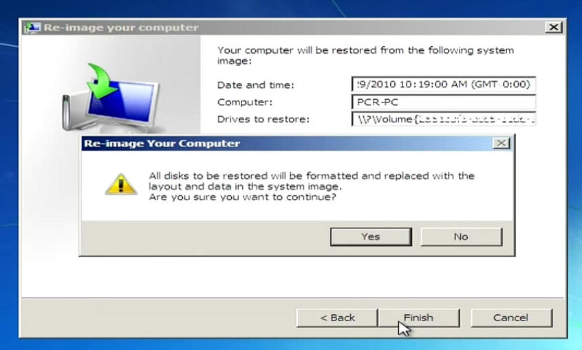 You will be warned now that all drives to have data restored in them, will loose their data and will be formated. If you are happy enough with this then click "YES". Note: Once you hit "Yes" there is no turning back.