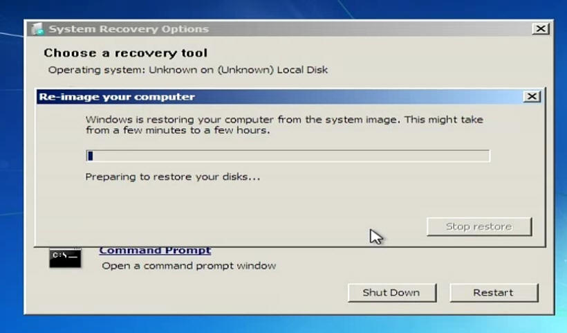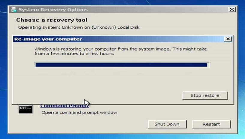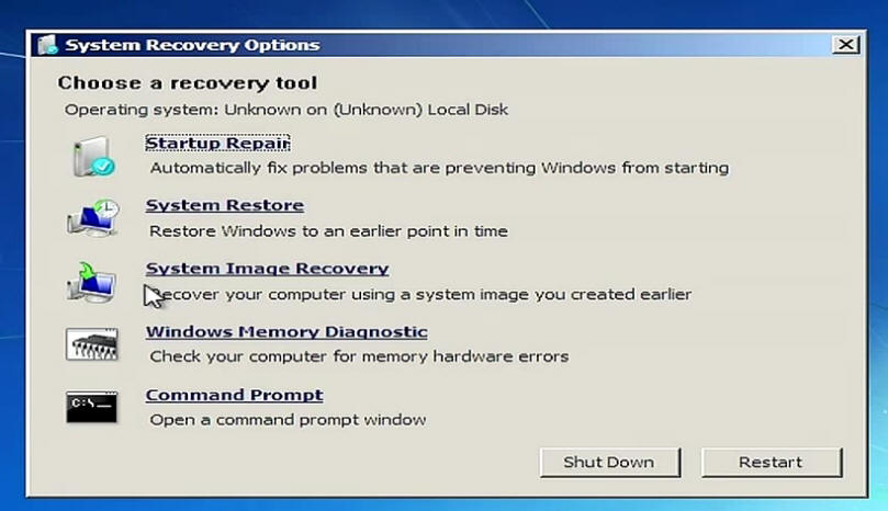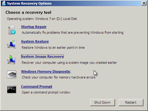 From the "Recovery Options" menu select "SYSTEM IMAGE RECOVERY"... |