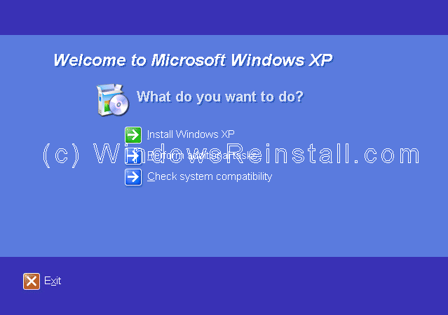 "INSTALL WINDOWS XP" by clicking on it with the mouse.