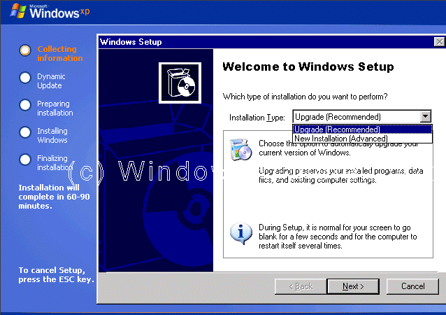 Welcome to Microsoft's Windows XP Home upgrade install guide
