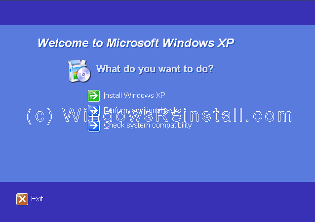 "INSTALL WINDOWS XP" by clicking on it with the mouse.