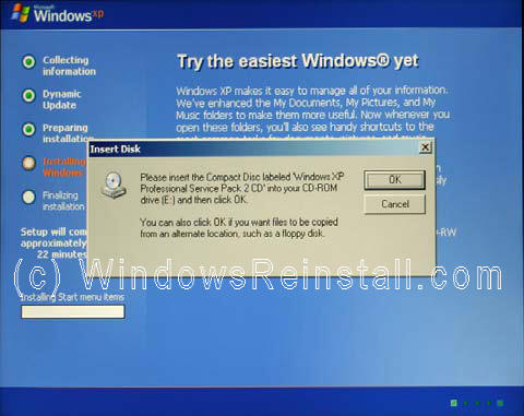 insert Windows XP Media Center Edition CD2 disk and press "OK" to continue