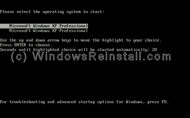 Boot will recognize that the XP CD is in the drive, DO NOT press any keys, let setup bypass the CD boot.
