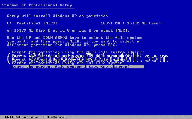 Now you will be asked if you wish to format the drive, select "Leave the current file system intact (no changes)" and press "ENTER"